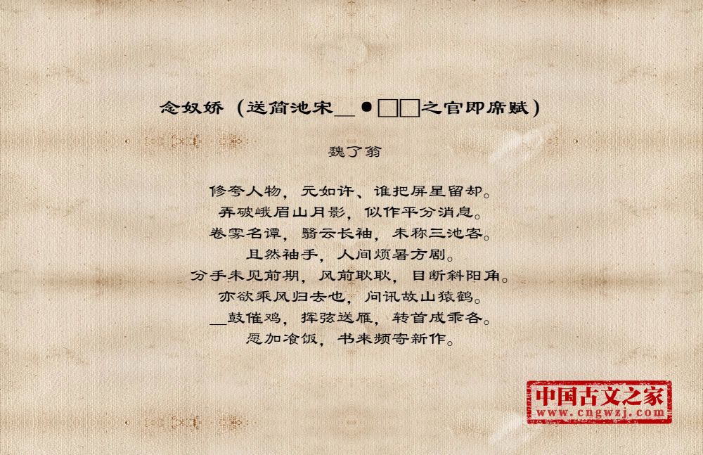 《念奴娇(送简池宋_·□□之官即席赋)》的原文打印版(魏了翁)
