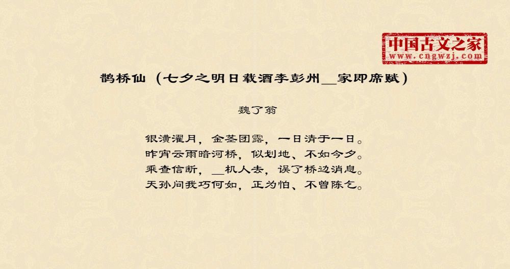 《鹊桥仙(七夕之明日载酒李彭州_家即席赋)》的原文打印版(魏了翁)
