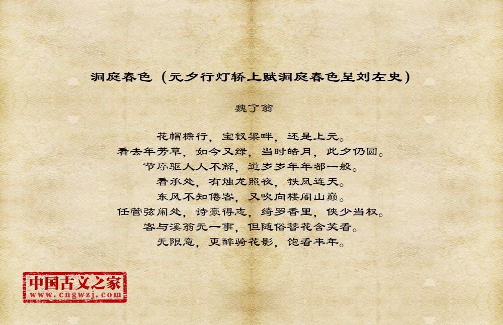 《洞庭春色(元夕行灯轿上赋洞庭春色呈刘左史)》的原文打印版(魏了翁)