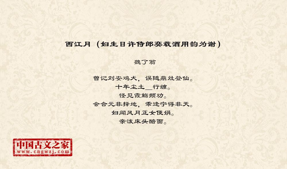 《西江月(妇生日许侍郎奕载酒用韵为谢)》的原文打印版(魏了翁)