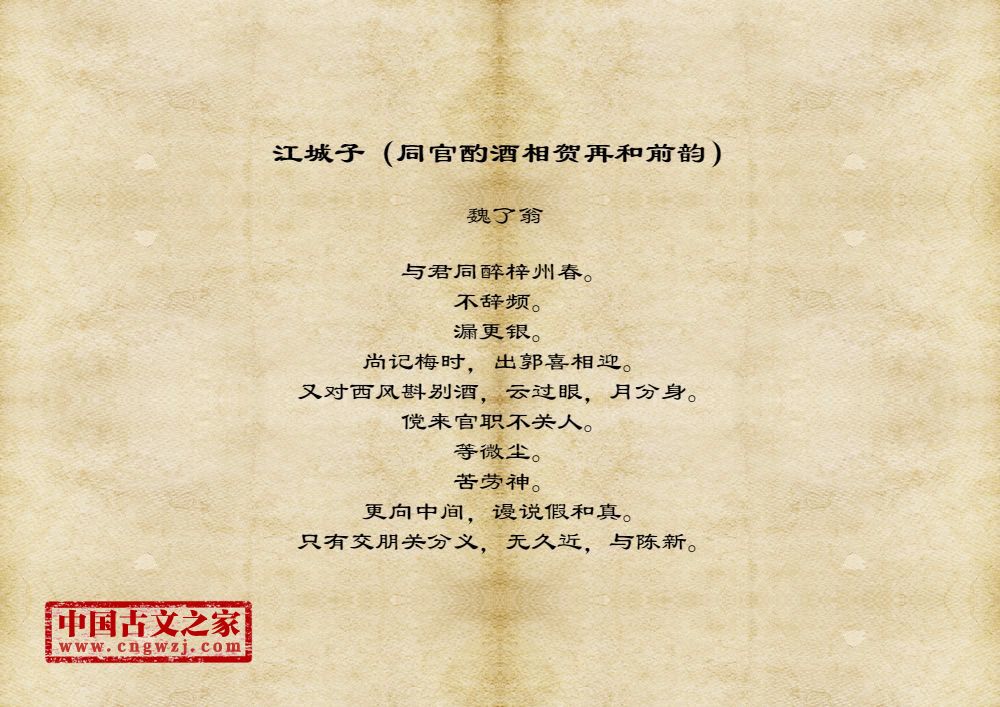 《江城子(同官酌酒相贺再和前韵)》的原文打印版(魏了翁)