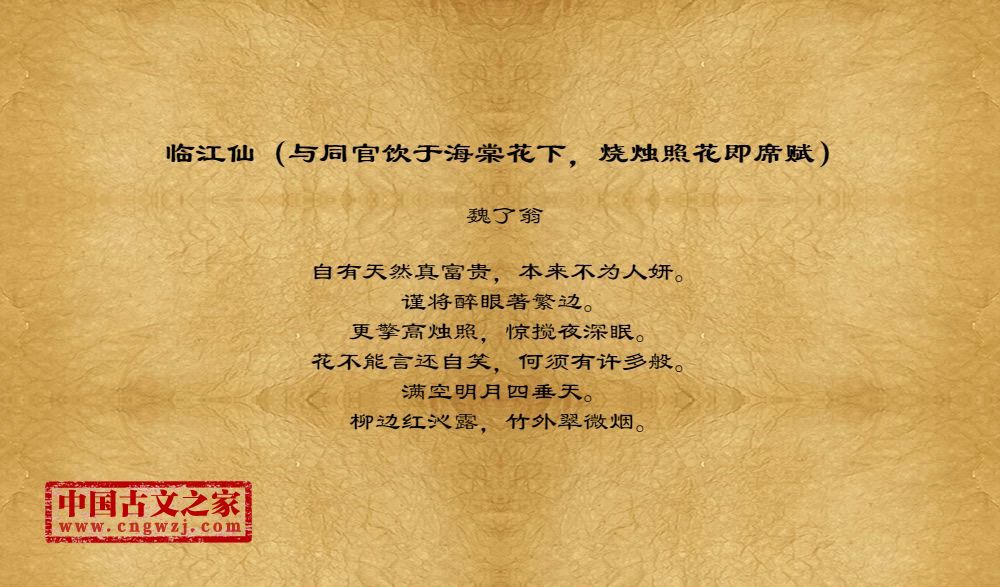 《临江仙(与同官饮于海棠花下,烧烛照花即席赋)》的原文打印版(魏了翁)