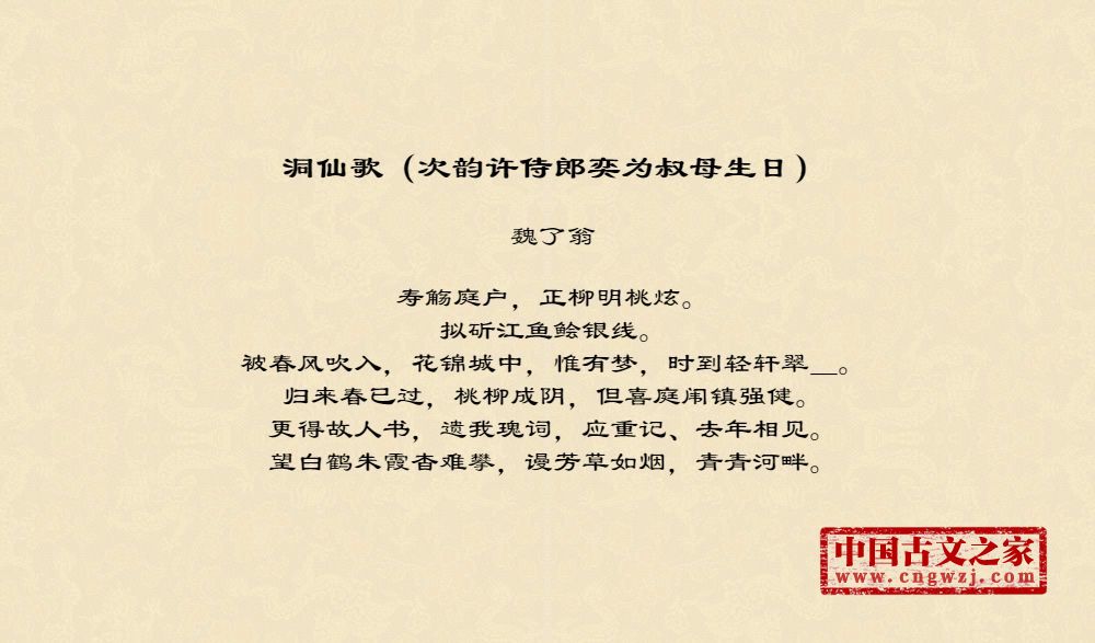 《洞仙歌(次韵许侍郎奕为叔母生日)》的原文打印版(魏了翁)