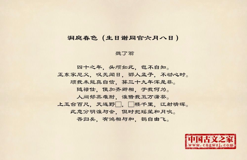 《洞庭春色(生日谢同官六月八日)》的原文打印版(魏了翁)