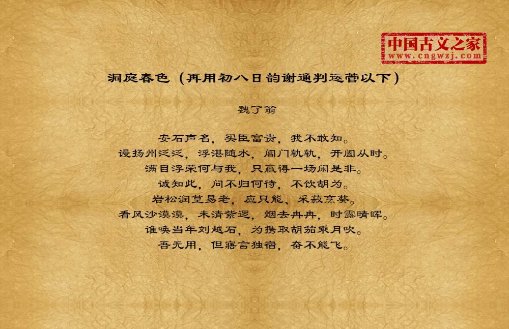 《洞庭春色(再用初八日韵谢通判运管以下)》由魏了翁创作