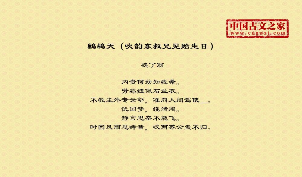 《鹧鸪天(吹韵东叔兄见贻生日)》的原文打印版(魏了翁)