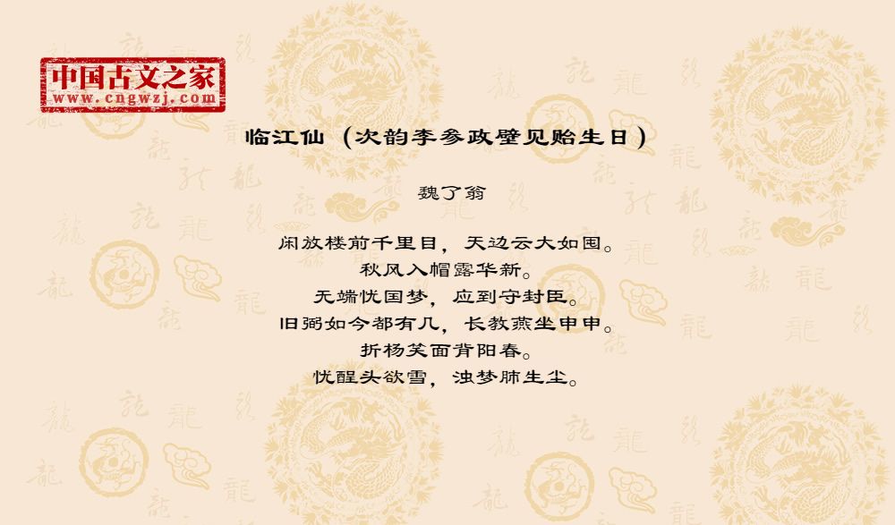 《临江仙(次韵李参政壁见贻生日)》由魏了翁创作