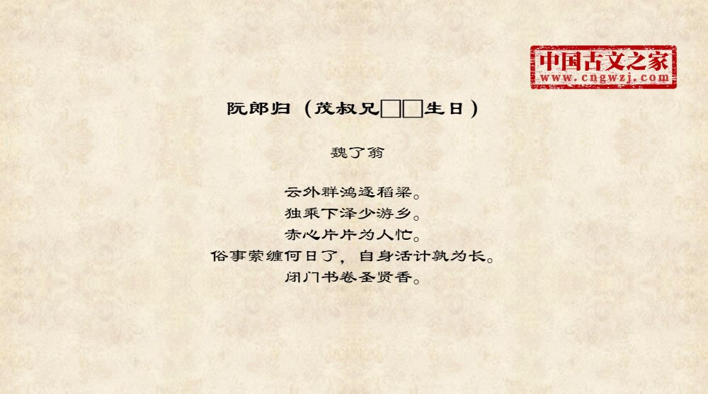 《阮郎归(茂叔兄□□生日)》的原文打印版(魏了翁)