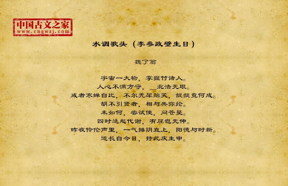 《水调歌头(李参政壁生日)》由魏了翁创作
