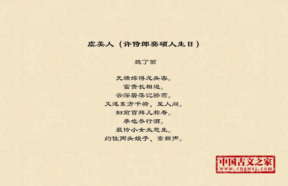 《虞美人(许侍郎奕硕人生日)》的原文打印版(魏了翁)