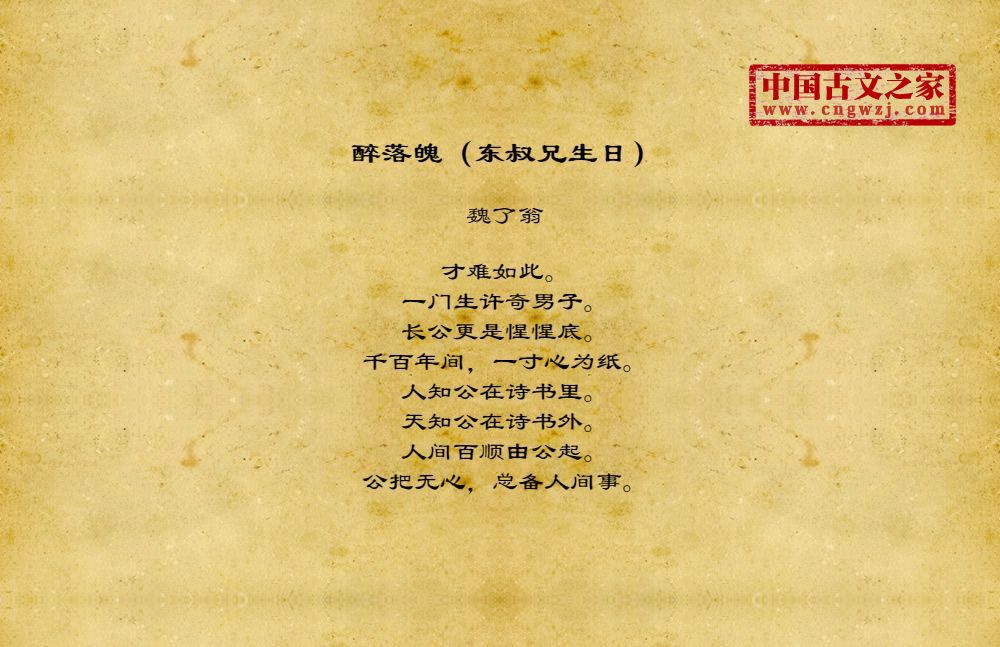 才难如此。一门生许奇男子。长公更是惺惺底。千百年间,一寸心为纸。人知公在诗书里。天知公在诗书外。人间百顺由公起。公把无心,总备人间事。