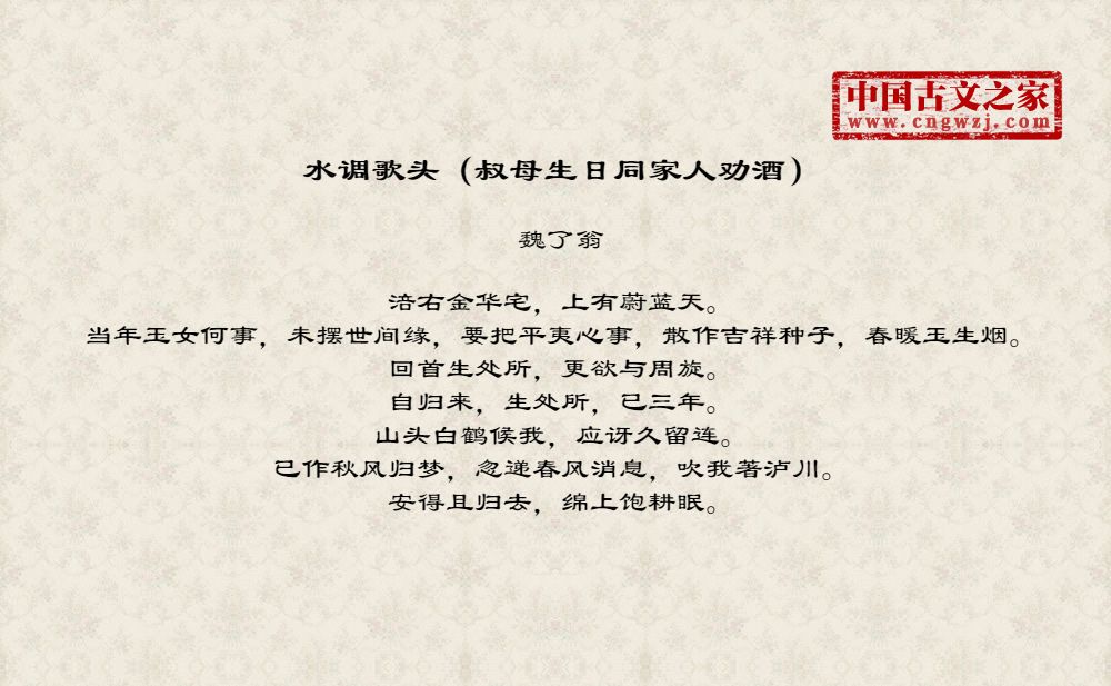 水调歌头(叔母生日同家人劝酒)