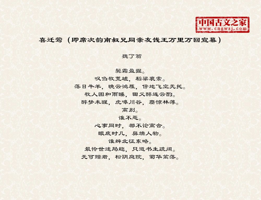 喜迁莺(即席次韵南叔兄同亲友饯王万里万回宣幕)图片