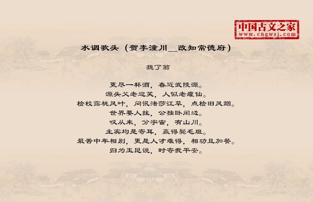 《水调歌头(贺李潼川_改知常德府)》由魏了翁创作