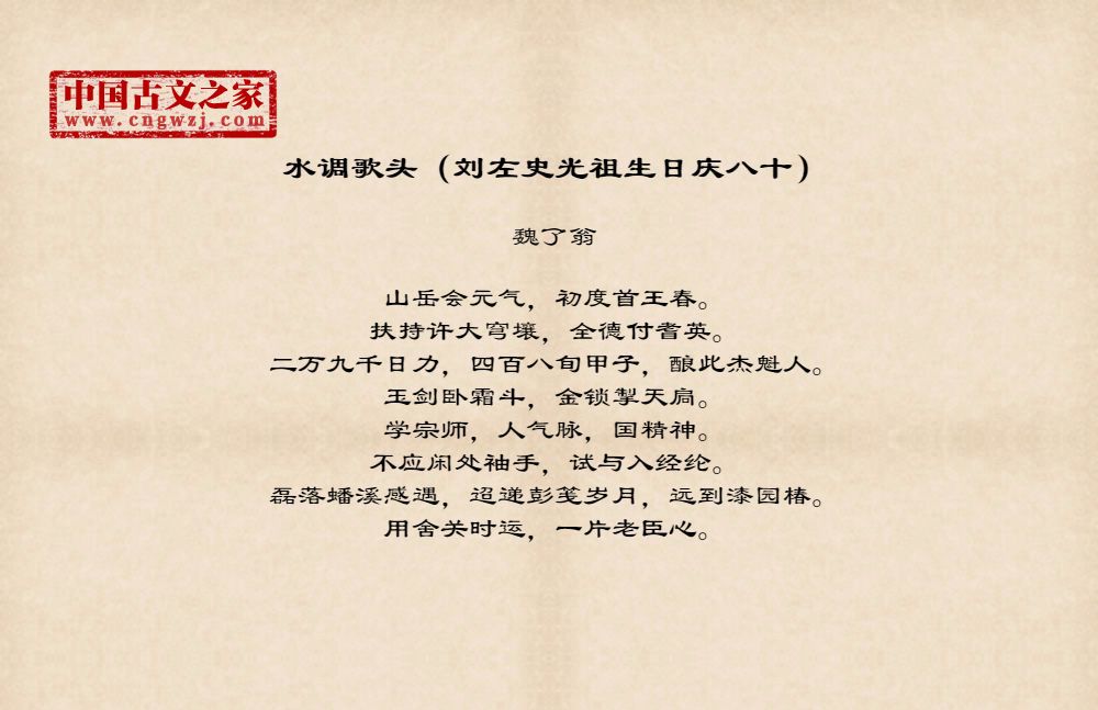《水调歌头(刘左史光祖生日庆八十)》由魏了翁创作