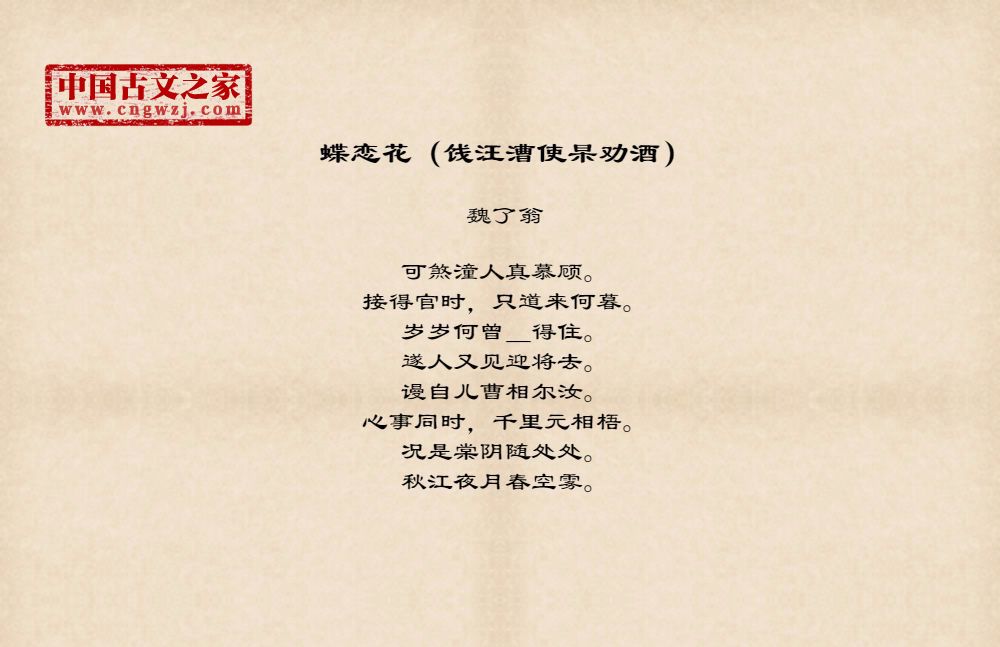 《蝶恋花(饯汪漕使杲劝酒)》的原文打印版(魏了翁)