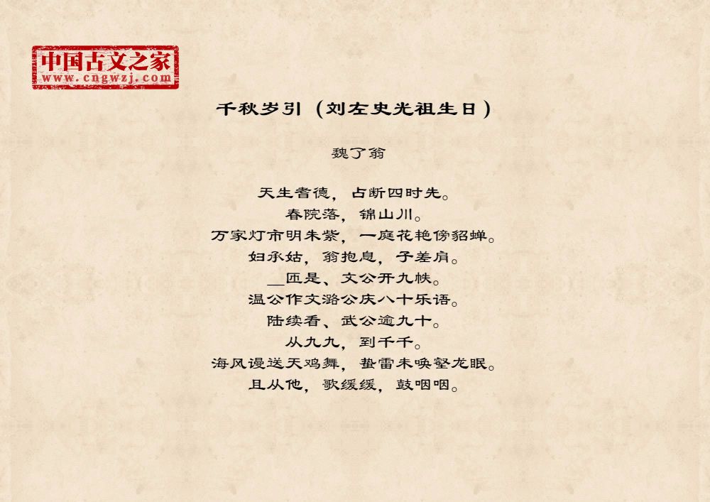 《千秋岁引(刘左史光祖生日)》由魏了翁创作