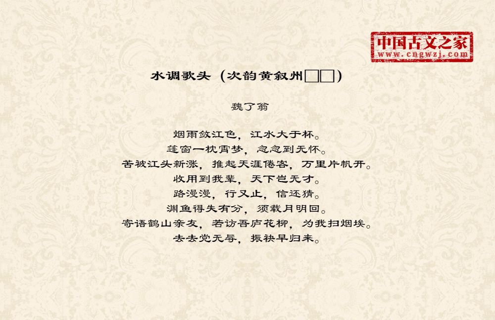 《水调歌头(次韵黄叙州□□)》的原文打印版(魏了翁)