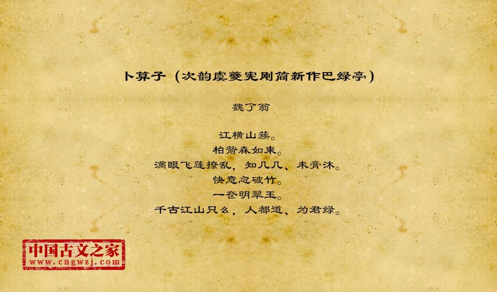 《卜算子(次韵虞夔宪刚简新作巴绿亭)》的原文打印版(魏了翁)