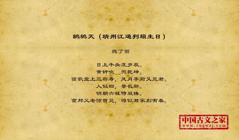《鹧鸪天(靖州江通判埙生日)》的原文打印版(魏了翁)
