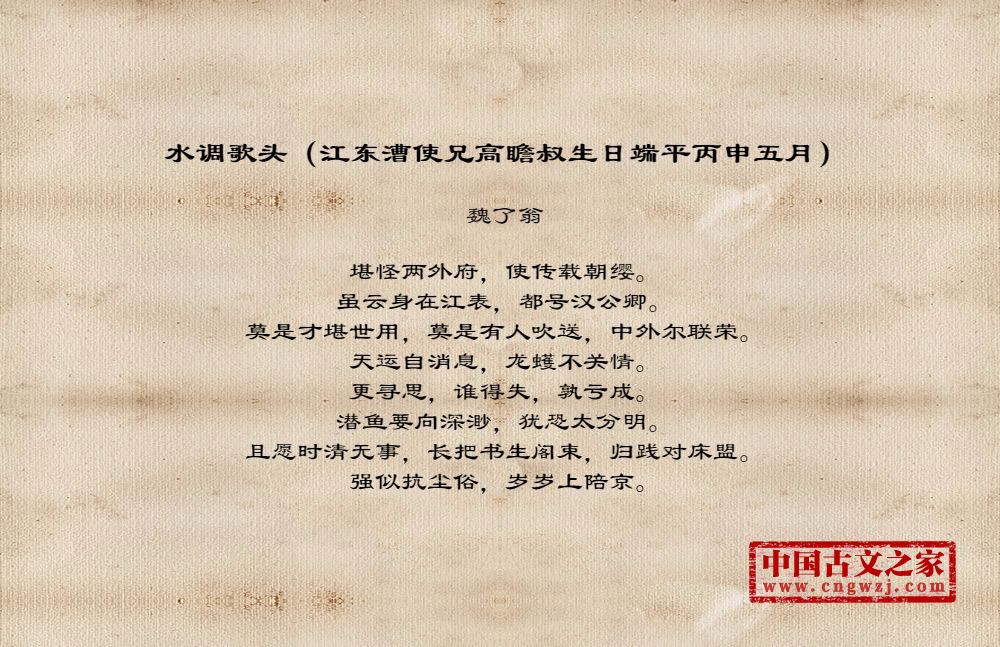 《水调歌头(江东漕使兄高瞻叔生日端平丙申五月)》的原文打印版(魏了翁)