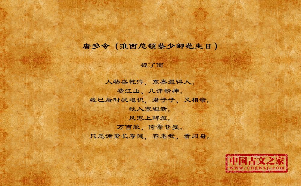 《唐多令(淮西总领蔡少卿范生日)》由魏了翁创作