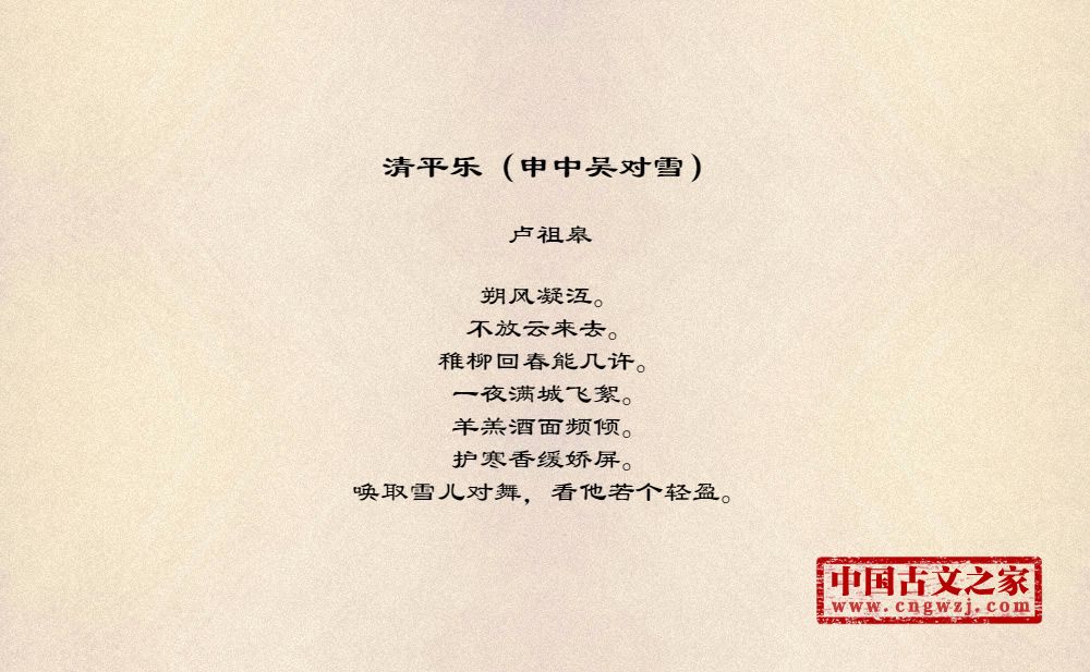 《清平乐(申中吴对雪)》的原文打印版(卢祖皋)