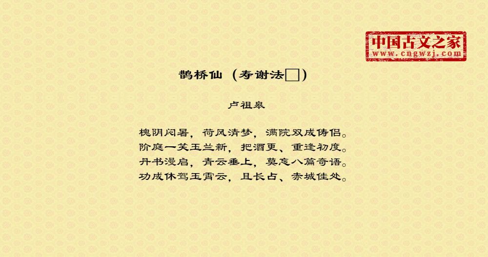 《鹊桥仙(寿谢法□)》的原文打印版(卢祖皋)