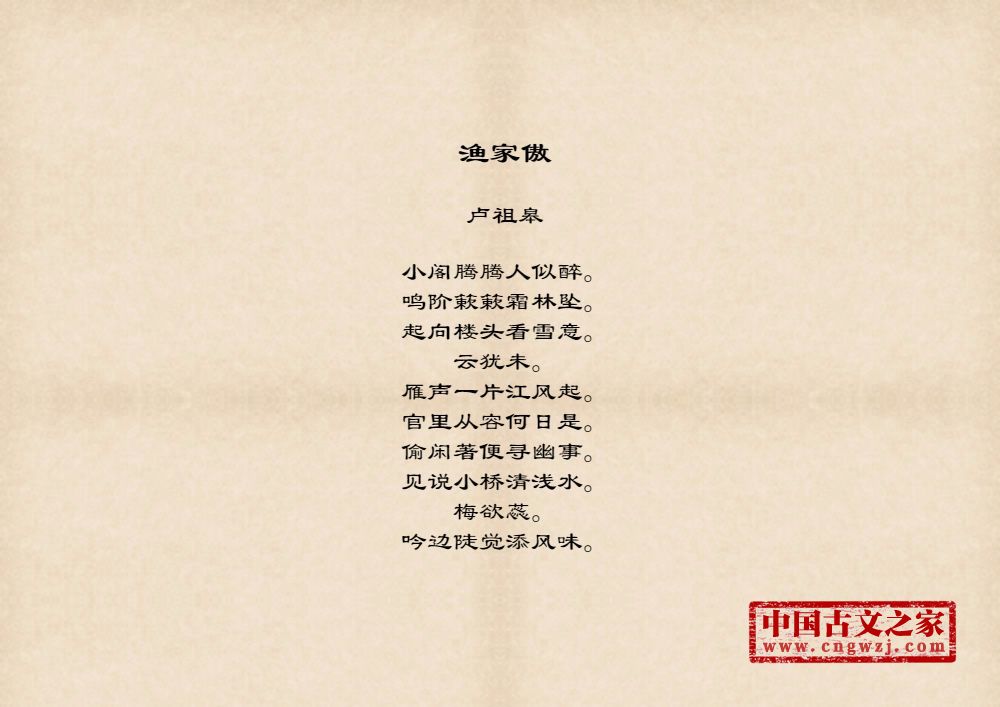 《渔家傲》的原文打印版(卢祖皋)