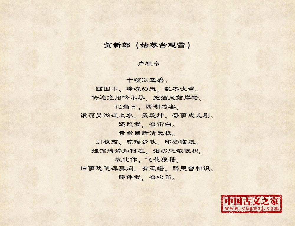 十顷涵空碧。画图中、峥嵘幻玉,乱零吹璧。倚遍危阑吟不尽,把酒风前岸帻。记当日、西湖为客。谁翦吴淞江上水,笑乾坤、奇事成儿剧。还照我,夜窗白。崇台目断清无极。引枝筇、琼瑶步软,印登临屐。娃馆娉婷知何在,泪粉愁浓恨积。故化作、飞花狼籍。旧事悠悠浑莫问,有玉蟾、醉里曾相识。聊伴我,夜吹笛。