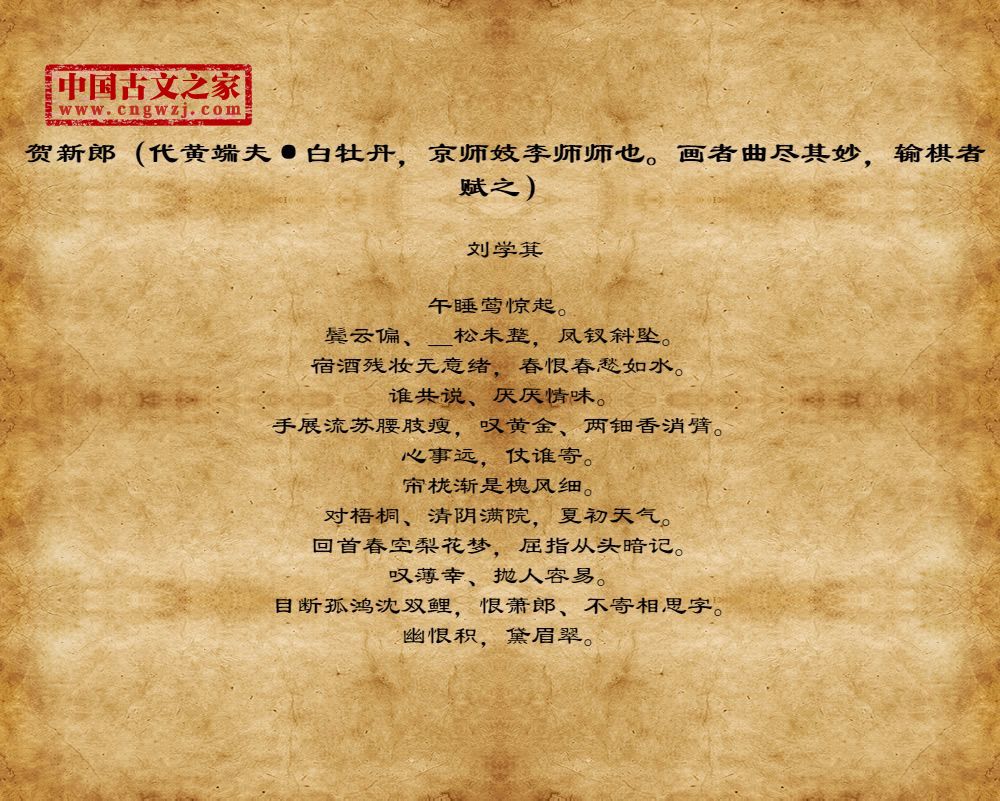 《贺新郎(代黄端夫·白牡丹,京师妓李师师也。画者曲尽其妙,输棋者赋之)》的原文打印版(刘学箕)