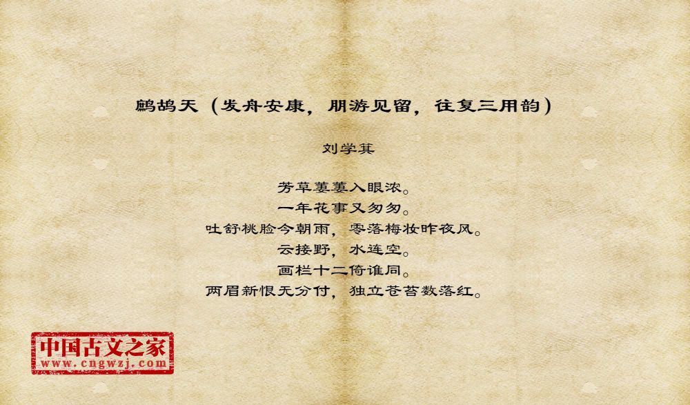 《鹧鸪天(发舟安康,朋游见留,往复三用韵)》由刘学箕创作