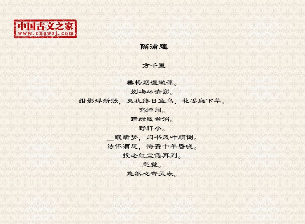 《隔浦莲》由方千里创作