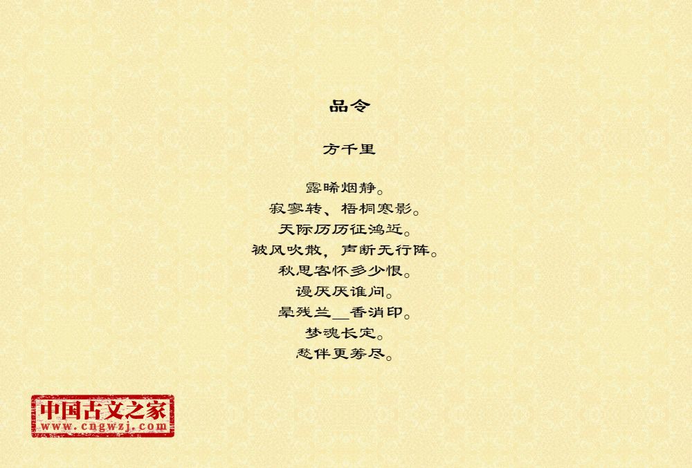 《品令》的原文打印版(方千里)