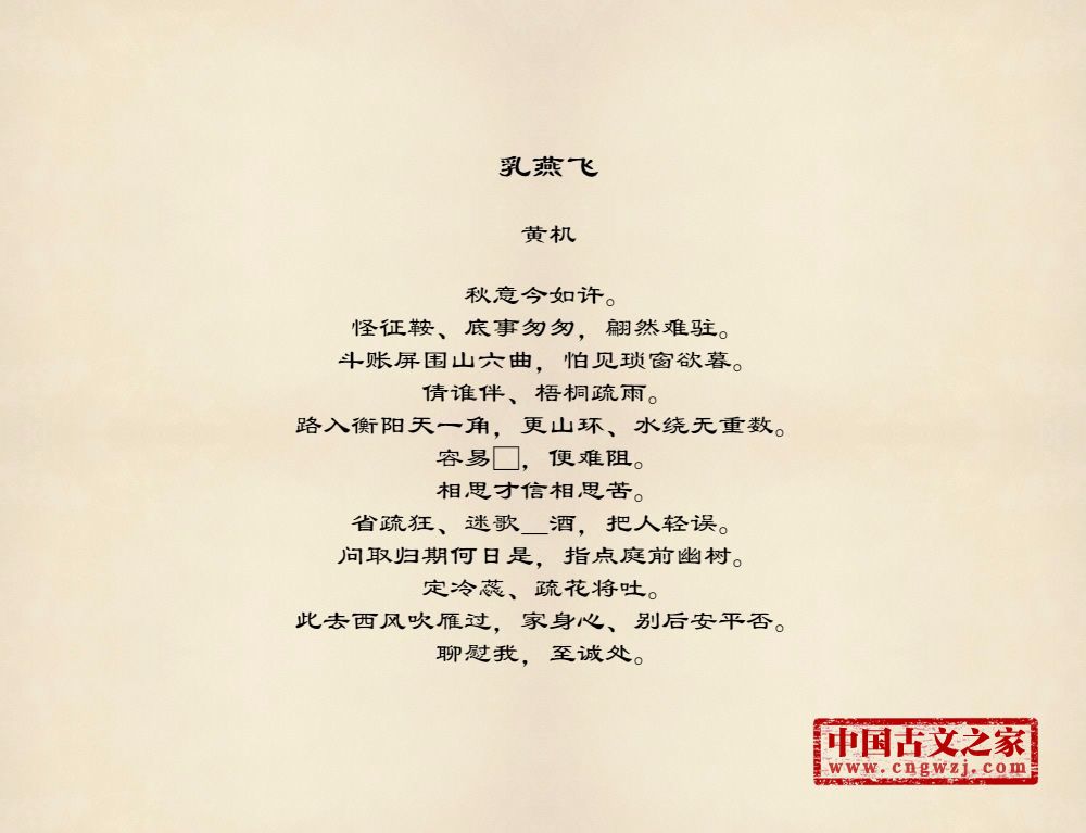 秋意今如许。怪征鞍、底事匆匆,翩然难驻。斗账屏围山六曲,怕见琐窗欲暮。倩谁伴、梧桐疏雨。路入衡阳天一角,更山环、水绕无重数。容易□,便难阻。相思才信相思苦。省疏狂、迷歌_酒,把人轻误。问取归期何日是,指点庭前幽树。定冷蕊、疏花将吐。此去西风吹雁过,家身心、别后安平否。聊慰我,至诚处。