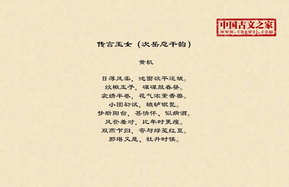 《传言玉女(次岳总干韵)》的原文打印版(黄机)