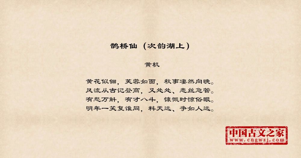 《鹊桥仙(次韵湖上)》的原文打印版(黄机)