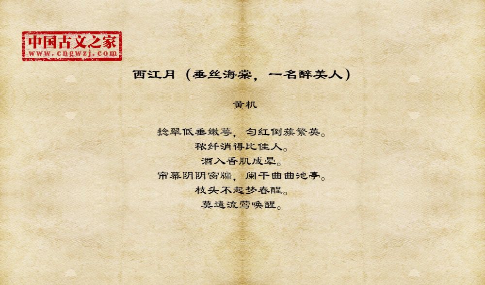 《西江月(垂丝海棠,一名醉美人)》的原文打印版(黄机)