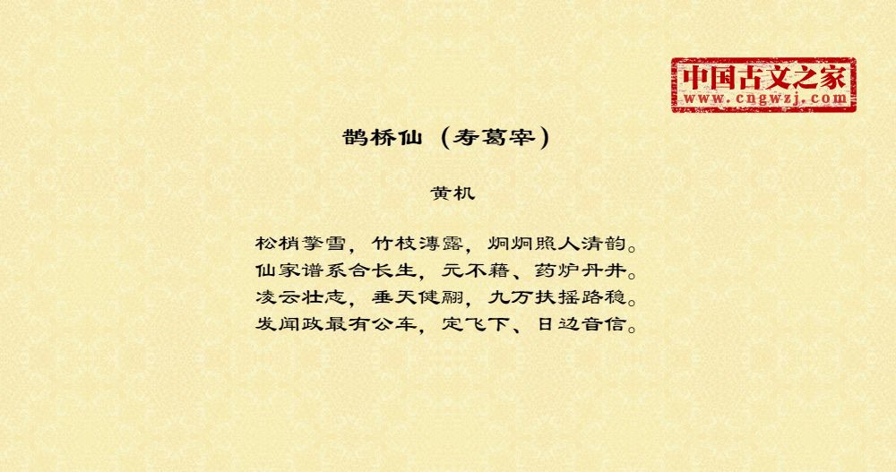 《鹊桥仙(寿葛宰)》的原文打印版(黄机)