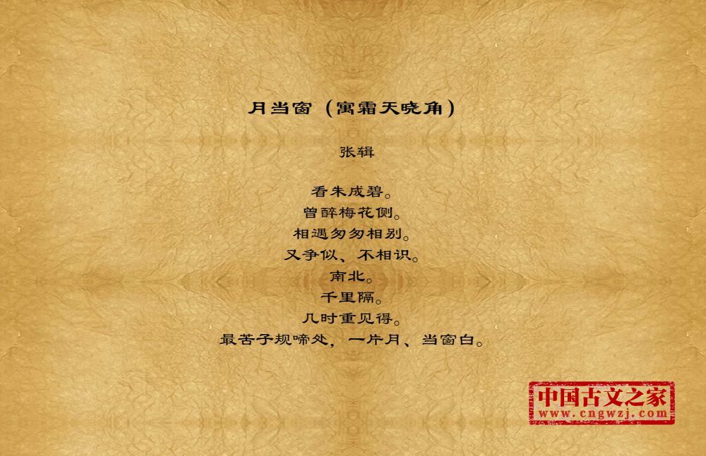 《月当窗(寓霜天晓角)》的原文打印版(张辑)