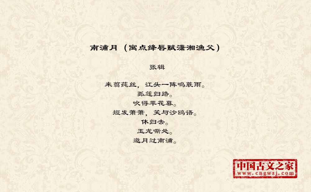 《南浦月(寓点绛唇赋潇湘渔父)》的原文打印版(张辑)