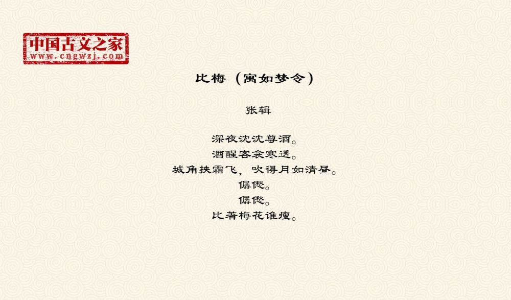 《比梅(寓如梦令)》由张辑创作
