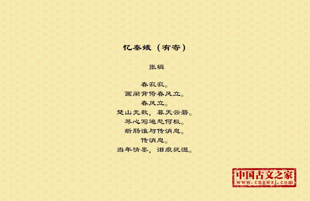 《忆秦娥(有寄)》的原文打印版(张辑)