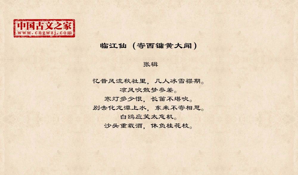《临江仙(寄西镛黄大闻)》由张辑创作