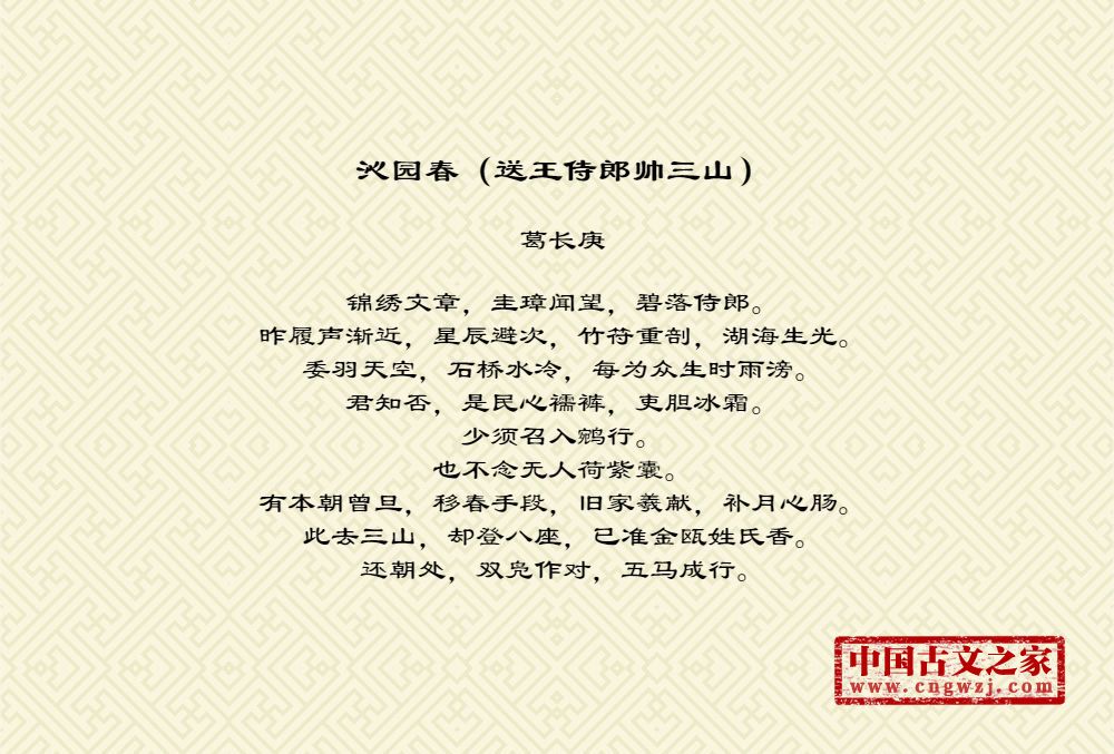 《沁园春(送王侍郎帅三山)》的原文打印版(葛长庚)