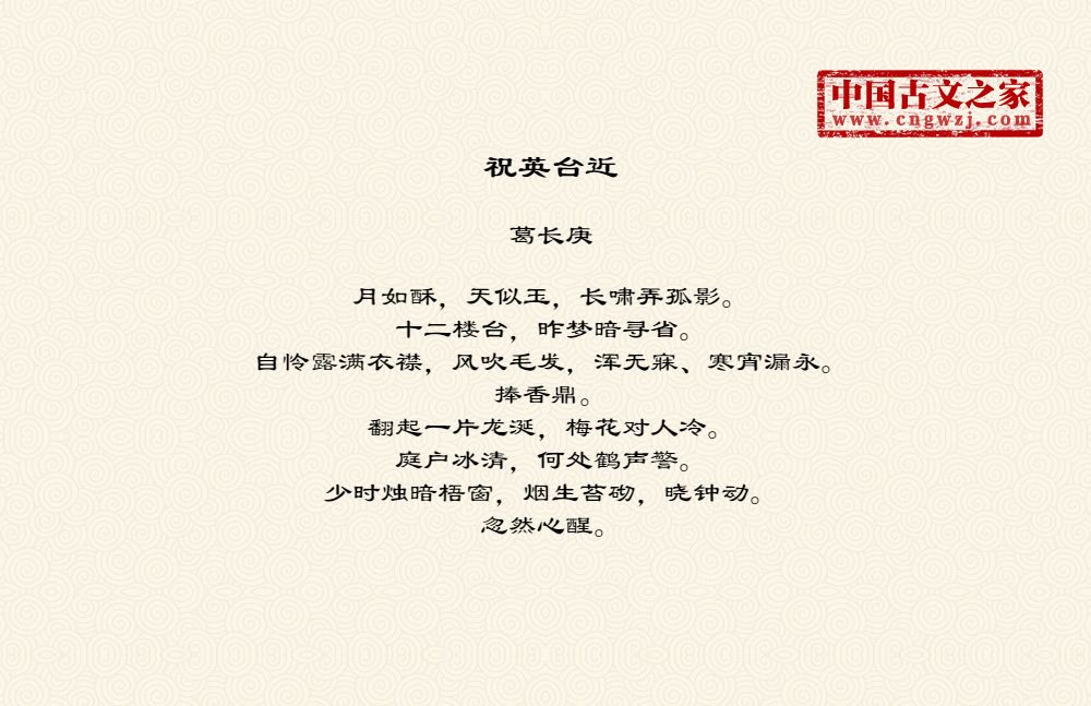 《祝英台近》的原文打印版(葛长庚)