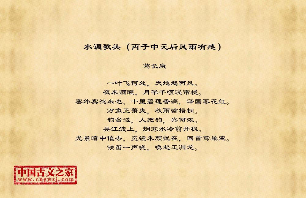 《水调歌头(丙子中元后风雨有感)》的原文打印版(葛长庚)