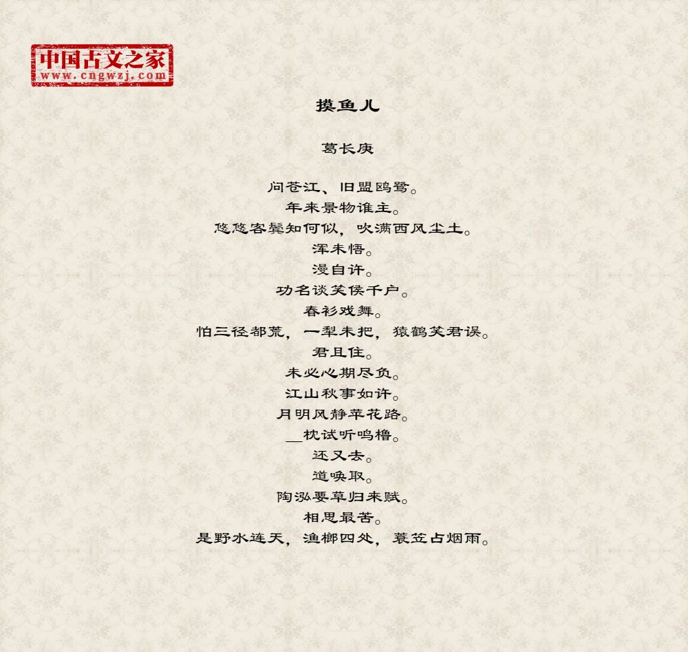问苍江、旧盟鸥鹭。年来景物谁主。悠悠客鬓知何似,吹满西风尘土。浑未悟。漫自许。功名谈笑侯千户。春衫戏舞。怕三径都荒,一犁未把,猿鹤笑君误。君且住。未必心期尽负。江山秋事如许。月明风静苹花路。_枕试听鸣橹。还又去。道唤取。陶泓要草归来赋。相思最苦。是野水连天,渔榔四处,蓑笠占烟雨。