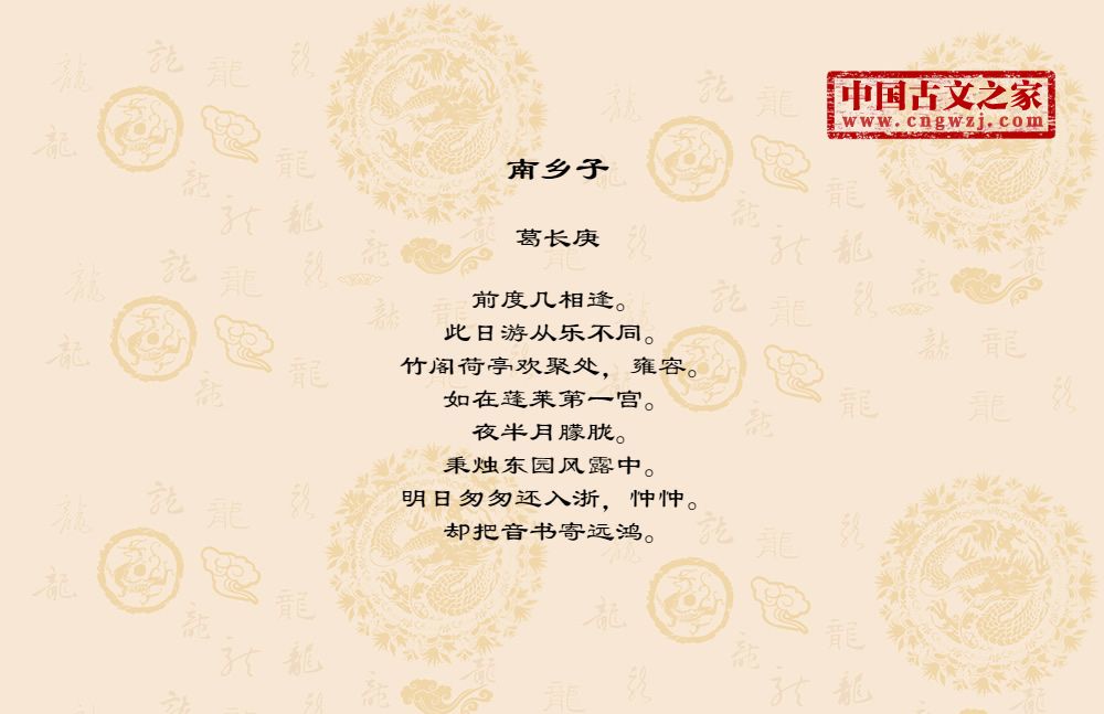 《南乡子》的原文打印版(葛长庚)