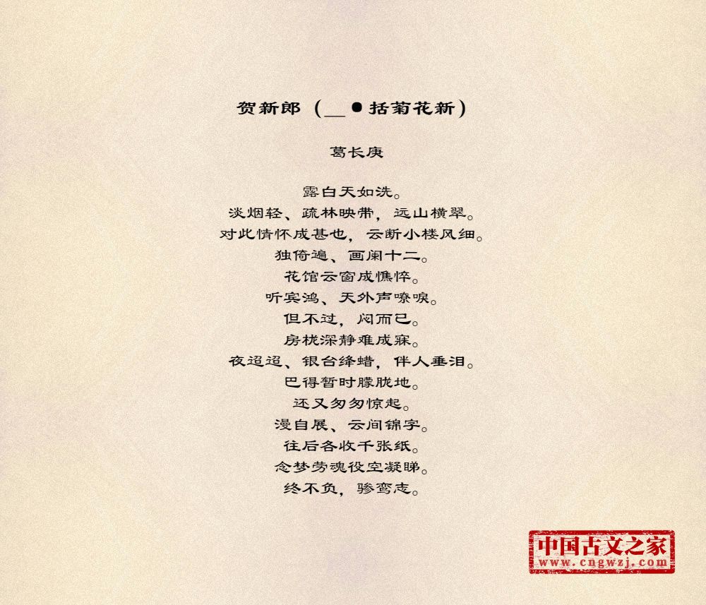 露白天如洗。淡烟轻、疏林映带,远山横翠。对此情怀成甚也,云断小楼风细。独倚遍、画阑十二。花馆云窗成憔悴。听宾鸿、天外声嘹唳。但不过,闷而已。房栊深静难成寐。夜迢迢、银台绛蜡,伴人垂泪。巴得暂时朦胧地。还又匆匆惊起。漫自展、云间锦字。往后各收千张纸。念梦劳魂役空凝睇。终不负,骖鸾志。